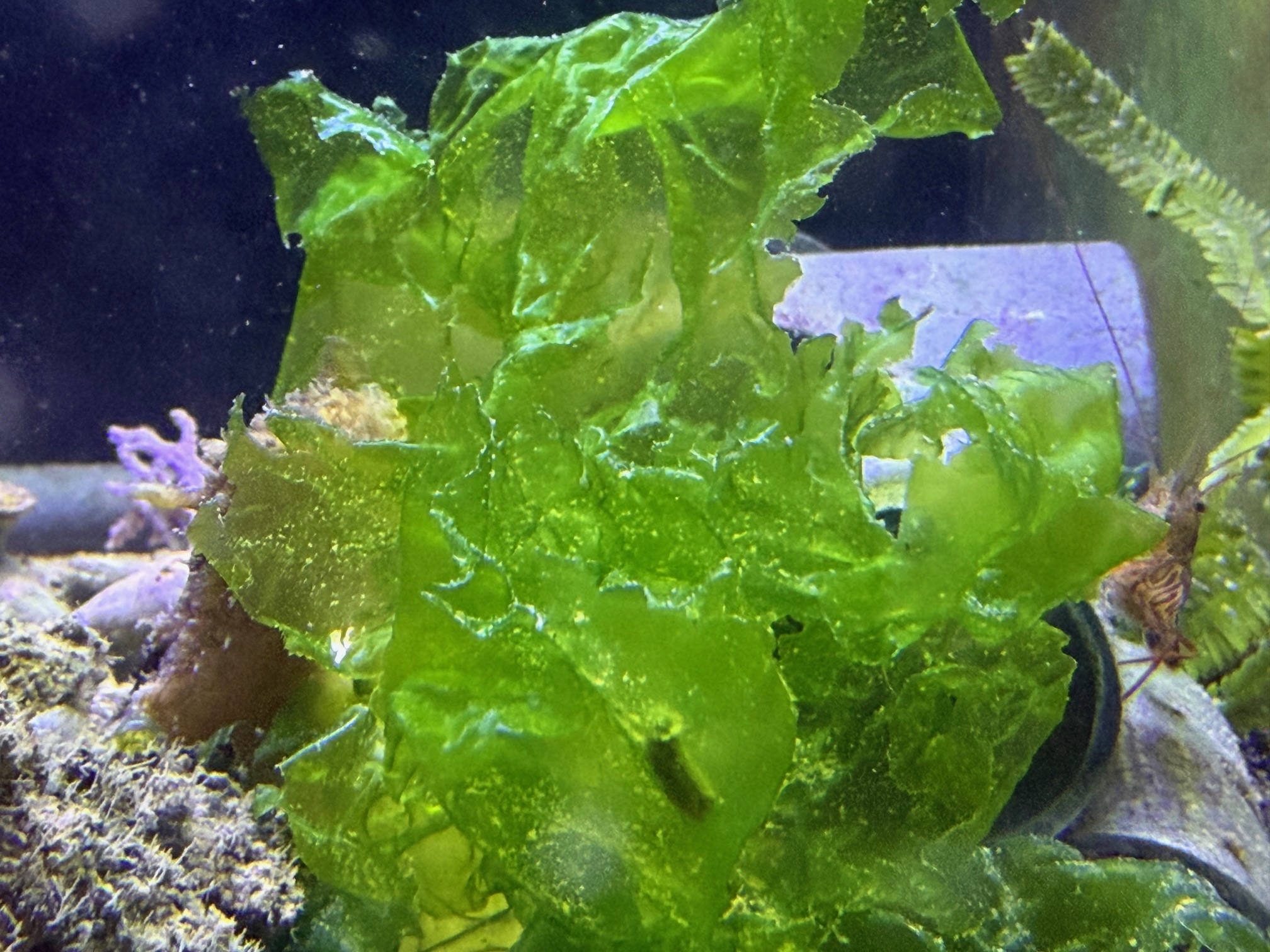 Meeressalat, braucht eine hohe Beleuchtungsstärke um gut zu wachsen zu können. Falls er zu schnell wächst, kann er gut unter Kontrolle gehalten werden.
